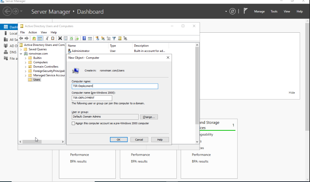 Click "OK" once done and you will see the TSR-Deployment added on the Active Directory Users and Computers.