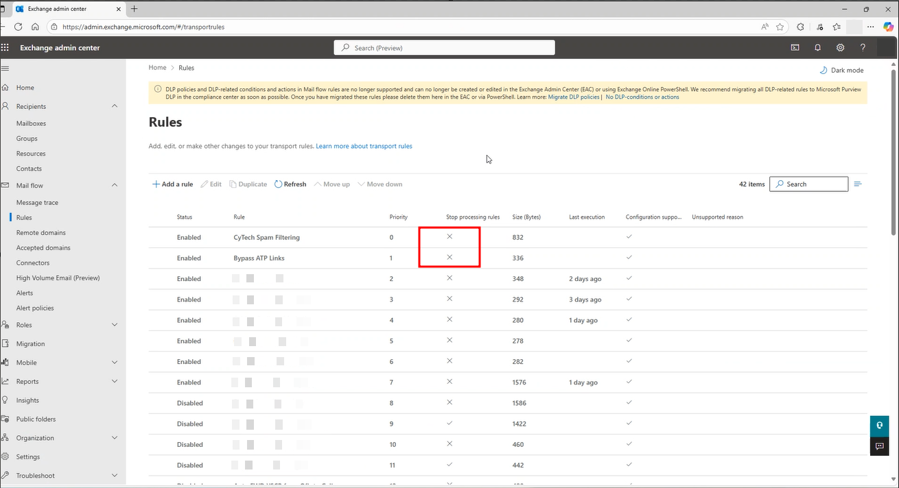 CyTech Spam Filtering and ByPass ATP links should be "X" status in "Stop processing rules".