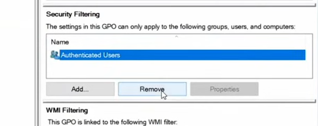 - On your Group Policy Managent remove the default Authenticated Users in Security Filtering.