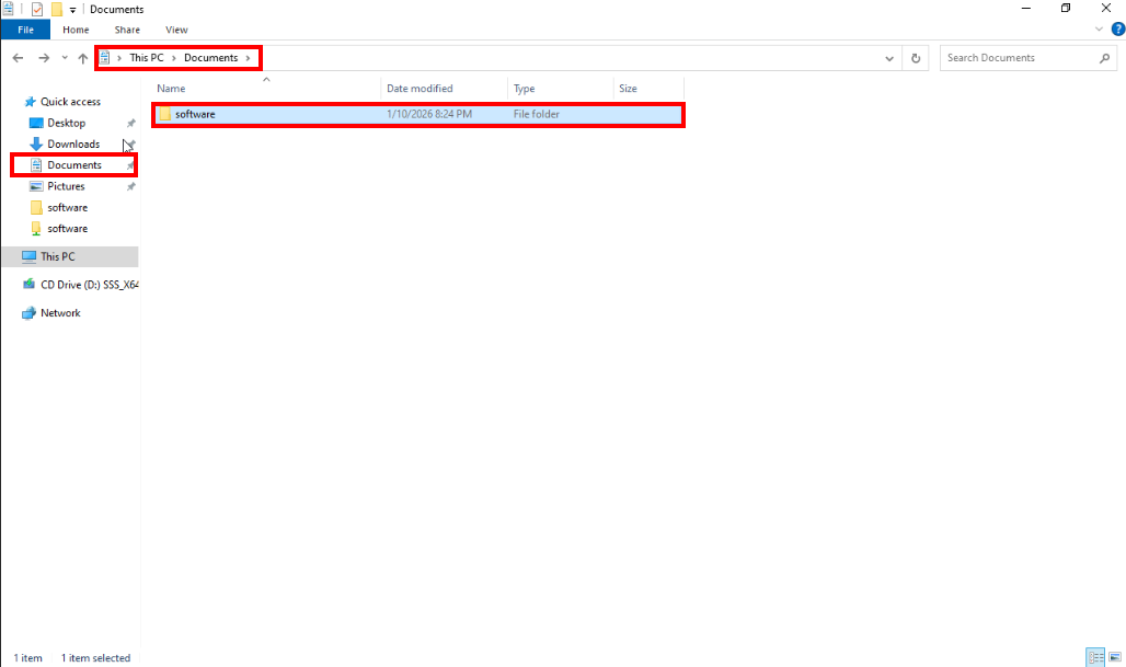 - On a Document folder, create another folder inside of it with your desired name (e.g., software).