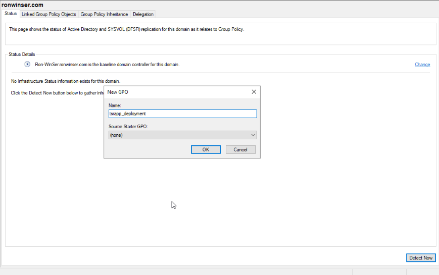 Click "OK" once done and you will see the TSR-Deployment added on the Active Directory Users and Computers.
