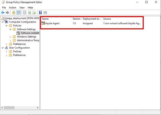 - So now your Aquila Agent with .msi format installer is now already added in the GPO.
